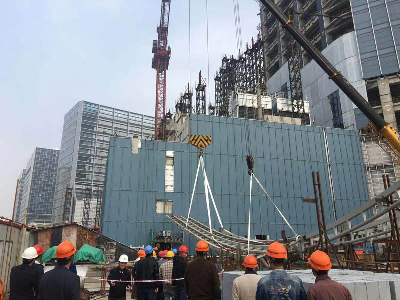 裙擺第一吊鋼結構件起吊現場(chǎng)