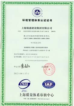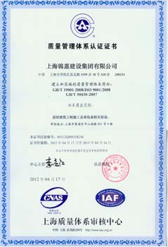 2012年3月,上海質(zhì)量體系審核中心對錦惠集團的質(zhì)量、職業(yè)健康安全、環(huán)境管理手冊和程序文件實(shí)施了復評審核,2012年4月17日通過(guò)了對GB/T 19001-2008/ISO 9001:2008, GB/T 50430-2007、GB/T 28001-2001、GB/T 24001-2004/ISO 14001:2004 “三標一體化”管理體系認證的復評審核。